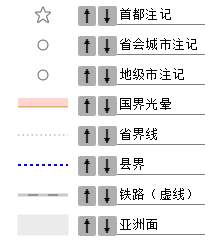 以上得到的图例样式有些样式描述的是同一要素,例如铁路有虚线和实线两个图层,国界有边线和光晕两个图层,因此需要进行合并。合并后的结果如下图所示: