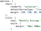 在 Highcharts 中设置配置选项不需要任何高级的编程技术,所有的配置都是 JSON 对象,只包含用冒号连接的键值对、用逗号进行分割、用括号进行对象包裹。JSON 具有易于人阅读和编写,同时也易于机器解析和生成的特点。