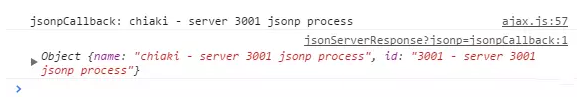 app.get('/jsonServerResponse', function(req, res) { var cb = req.query.jsonp console.log(cb) var data = 'var data = {' + 'name: $("#name").val() + " - server 3001 jsonp process",' + 'id: $("#id").val() + " - server 3001 jsonp process"' + '};' var debug = 'console.log(data);' var callback = '$("#submit").click(function() {' + data + cb + '(data);' + debug + '});' res.send(callback) res.end() })与上面一样,我们在所获取的参数后面加上 “ – server 3001 jsonp process” 代表服务器对数据的操作。从代码中我么可以看到,处理函数除了根据参数做相应的处理,更多的也是进行字符串的拼接。