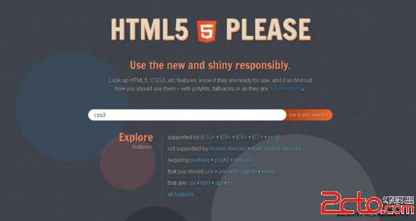 这个网站在之前的相关文章中也介绍过,如果你需要了解如何正确的使用HTML5相关技术的话,最好仔细的看看这个工具网站吧,相当的实用!